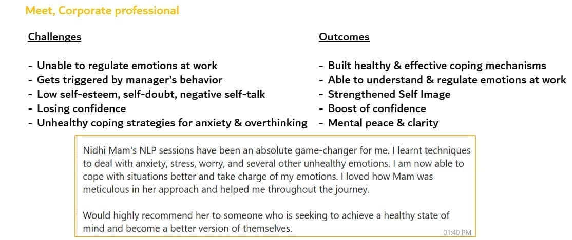 Successfully helped over 100 individuals overcome workplace stress & anxiety